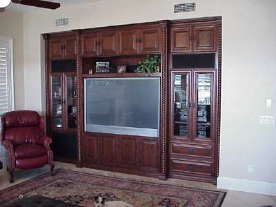 331-S Raised Panel Nutmeg Rustic Birch Custom Media Center