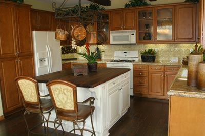 601/602 Raised Panel Medium Walnut Maple Kitchen with 331-S Light Victorian Creme Custom Island