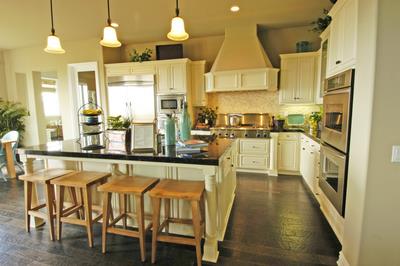 333-S Raised Panel Worn Champagne Kitchen with Custom Island